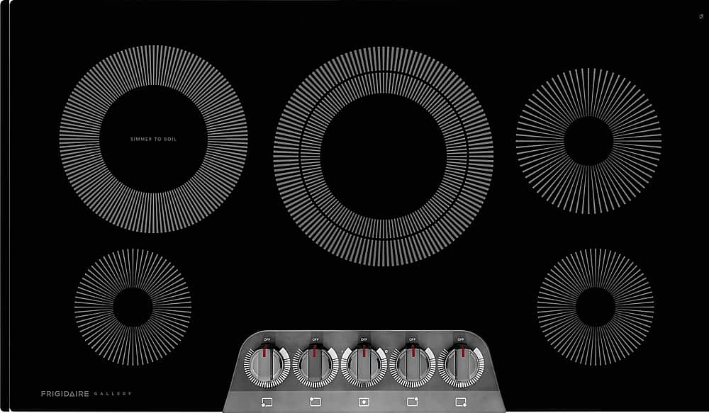 The Frigidaire Gallery 36 inch Built-In Electric Cooktop provides delicious results every time with the EvenTemp Element that delivers consistent heat across the elements surface, reducing hot and cold spots in your pan. Enjoy ultimate cooking flexibility with powerful elements designed to meet all of your cooking needs, including a Dual Expandable Element and Keep Warm Zone. Plus, these cooktops feature bright, backlit LED knobs that light up when the cooktop is in use, conveniently placed on the front of the cooktop.