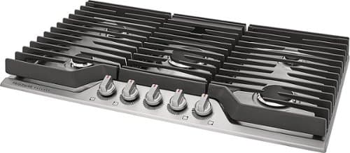The Frigidaire Gallery 36" Gas Cooktop allows you to get meals on the table faster with the Quick Boil 18,000 BTU burner. Enjoy ultimate cooking flexibility with powerful burners designed to meet all your cooking needs, from the 5,000 BTU simmer burner to the Quick Boil Burner. These cooktops feature new design elements like Backlit LED Knobs and Dishwasher Safe Burner Caps to make cooking and cleaning easier.