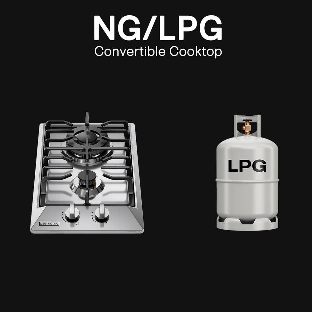 Empava 12 in. Gas Cooktop in Stainless Steel with 2 Sealed Burners LPG Convertible Stove