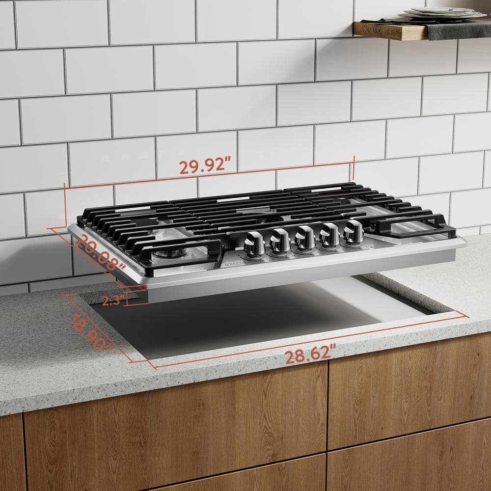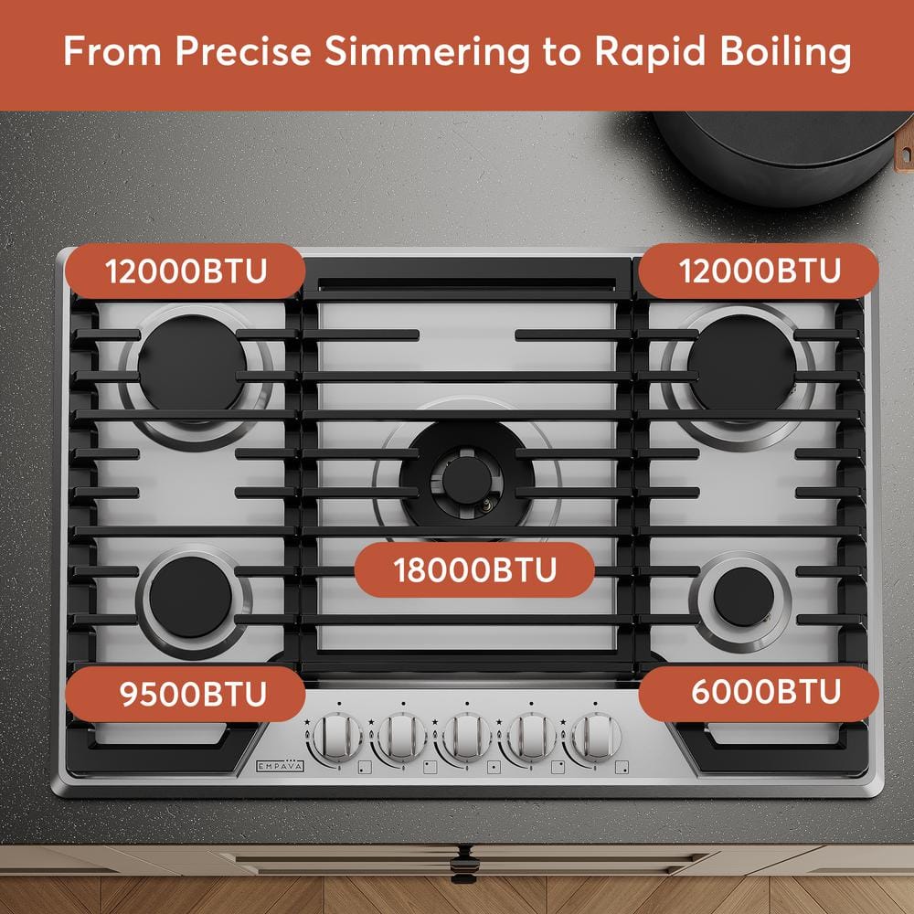 Empava Pro-Style 30 in. Built-In Gas Cooktop in Stainless Steel with 5-Burners Including a 18000 BTUs Power Burner