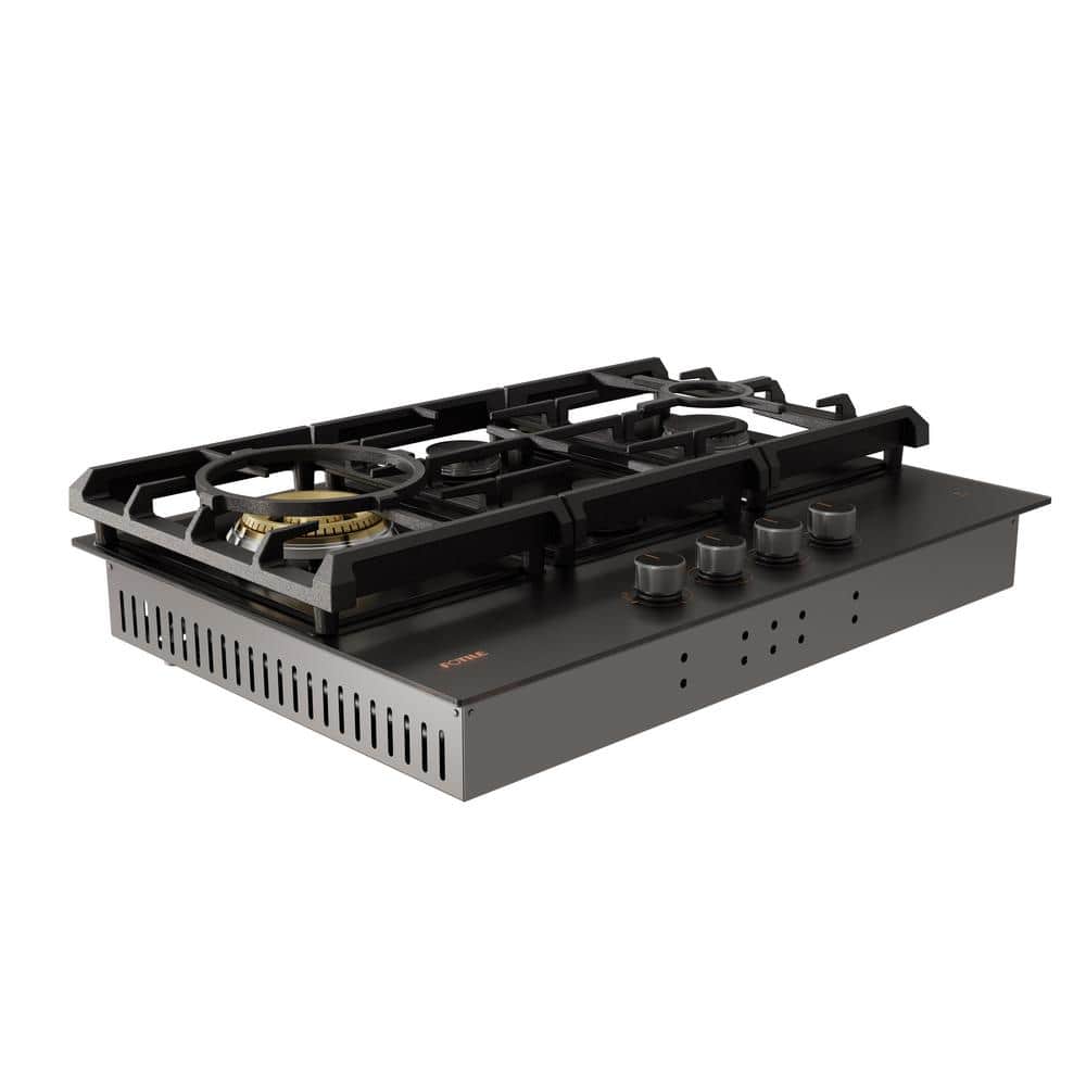 FOTILE 30 in. 4 Burners Moonshadow Tri-Ring Series Gas Cooktop with Frosted Matte Anti-Glare Glass in Black