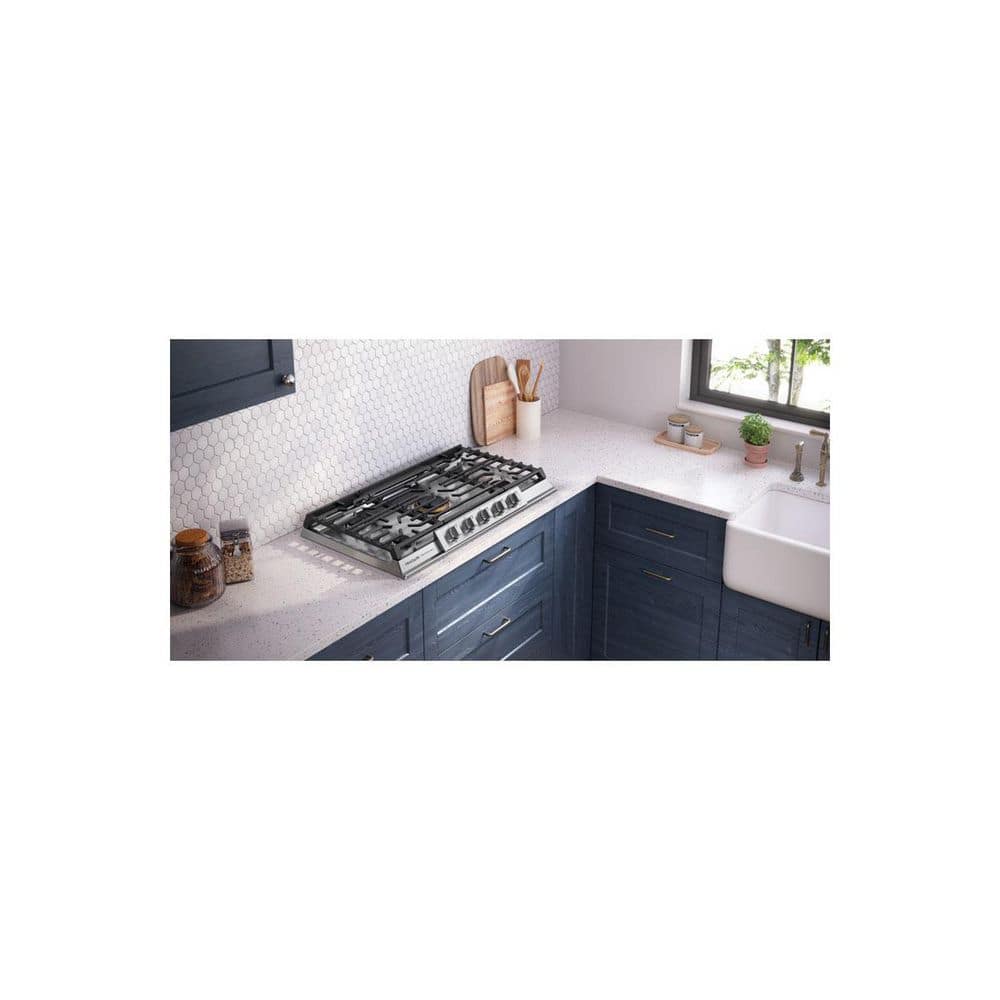 The Frigidaire Professional 36" Gas Cooktop provides consistent results with an EvenTempTM burner that delivers even heat across the cooking surface. Features backlit LED knobs that light up when the cooktop is in, and dishwasher safe grates and burner caps for easier cleaning. And get peace of mind that the cooktop will fit your existing cutout with our Frigidaire Fit Promise.