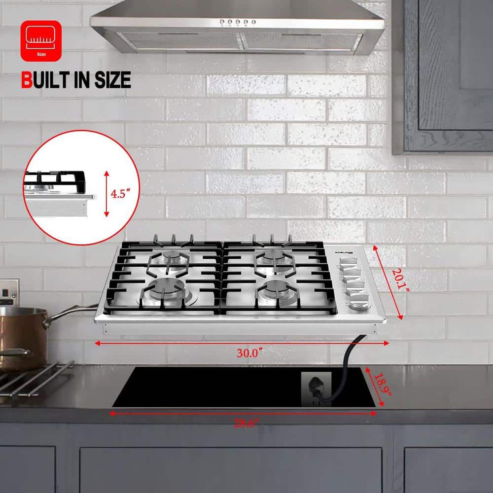 GASLAND 30 in. 4-Burners Recessed Gas Cooktop in Stainless Steel with a Simmer Burner, CSA Certified