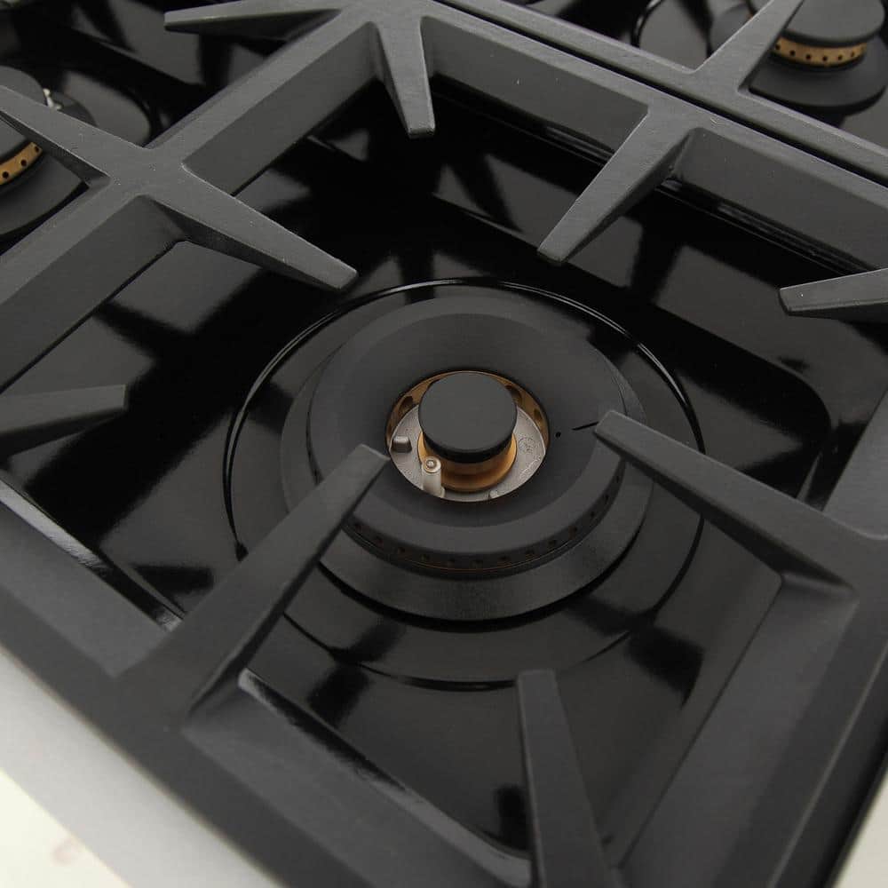 High-powered model is guaranteed to function consistently with Kucht's Ignition, using an auto-reignition system that ignites every time with ease and automatically reignites any time a flame burns out. The range top's continuous rail design grates cover the 6-burners and allows you to move your kitchen utensils easily and safely. You can slide the heaviest pots and pans on the rails without even having to lift them.