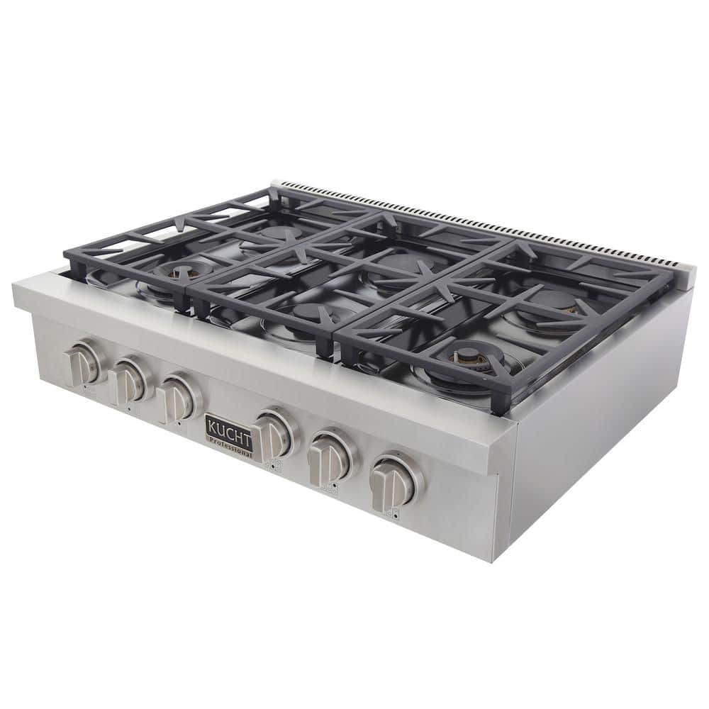 Kucht Professional 36 in. Liquid Propane Gas Range Top in Stainless Steel and Classic Silver Knobs with 6 Burners