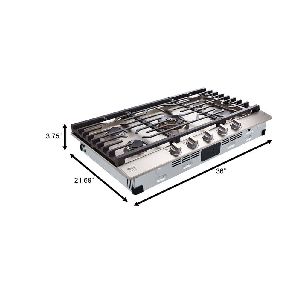 LG STUDIO 36 in. Gas Cooktop in Stainless Steel with 5-Burners including 24k UltraHeat Dual Burner