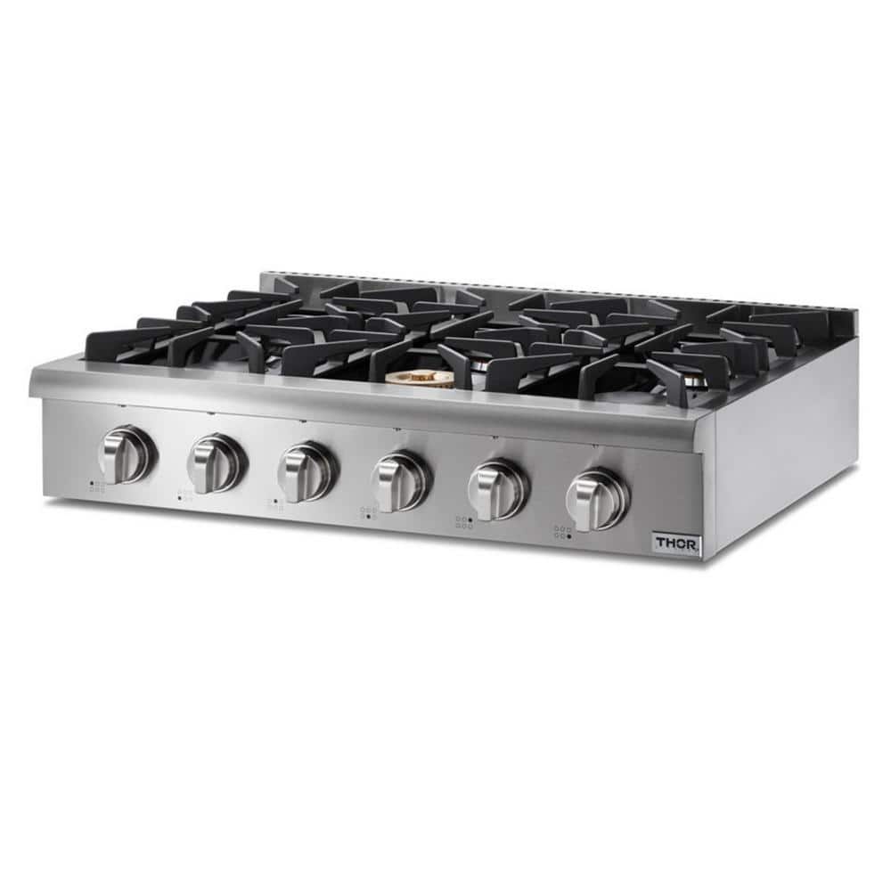 Thor Kitchen Pre-Converted Propane 36 in. Gas Cooktop in Stainless Steel with 6 Burners