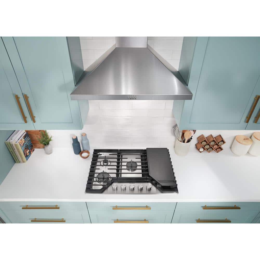 Cook everyone's favorite at once with this 5-burner gas cooktop that offers greater Cooking Flexibility. This cooktop griddle includes a SpeedHeat Burner for a quick boil and comes with a 2 in. 1-Hinged Grate to Griddle so you can easily swap cooking surfaces. Then cleanup is quick and easy with the EZ-2-Lift Hinged Cast-Iron Grates.