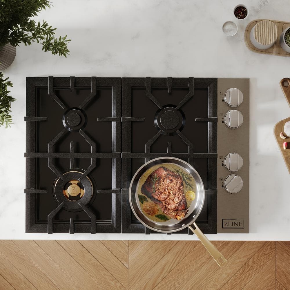 Luxury isn't meant to be left desired-it's meant to be attainable. The ZLINE 30 in. Gas Cooktop with 4 Brass Burners and Black Porcelain Top (RC-BR-30-PBT) provides a professional culinary experience by pairing unmatched performance with timeless style. Achieve ZLINE Attainable Luxury excellence with innovative features designed to enhance your kitchen's capability.