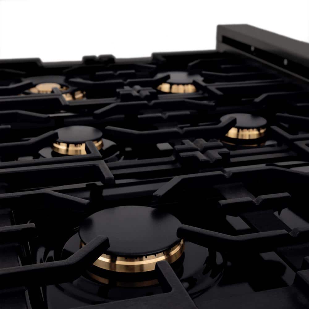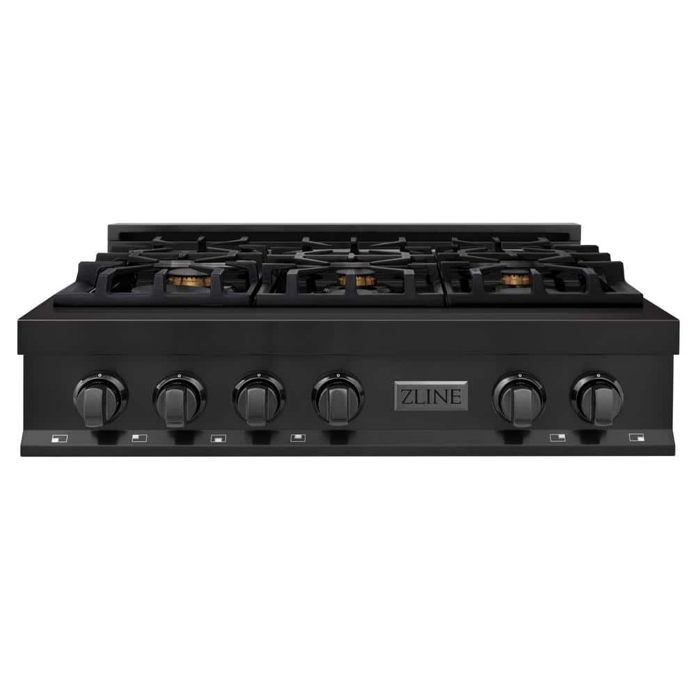 ZLINE Kitchen and Bath 36 in. 6 Burner Front Control Gas Cooktop with Brass Burners in Black Stainless Steel