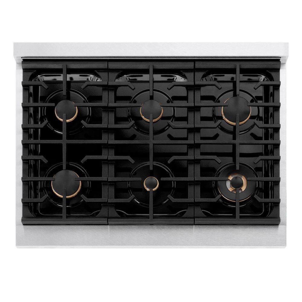 ZLINE Kitchen and Bath 36 in. Autograph Edition Paramount Gas Rangetop with 6 Burners in Satin Steel with Champagne Bronze Accents