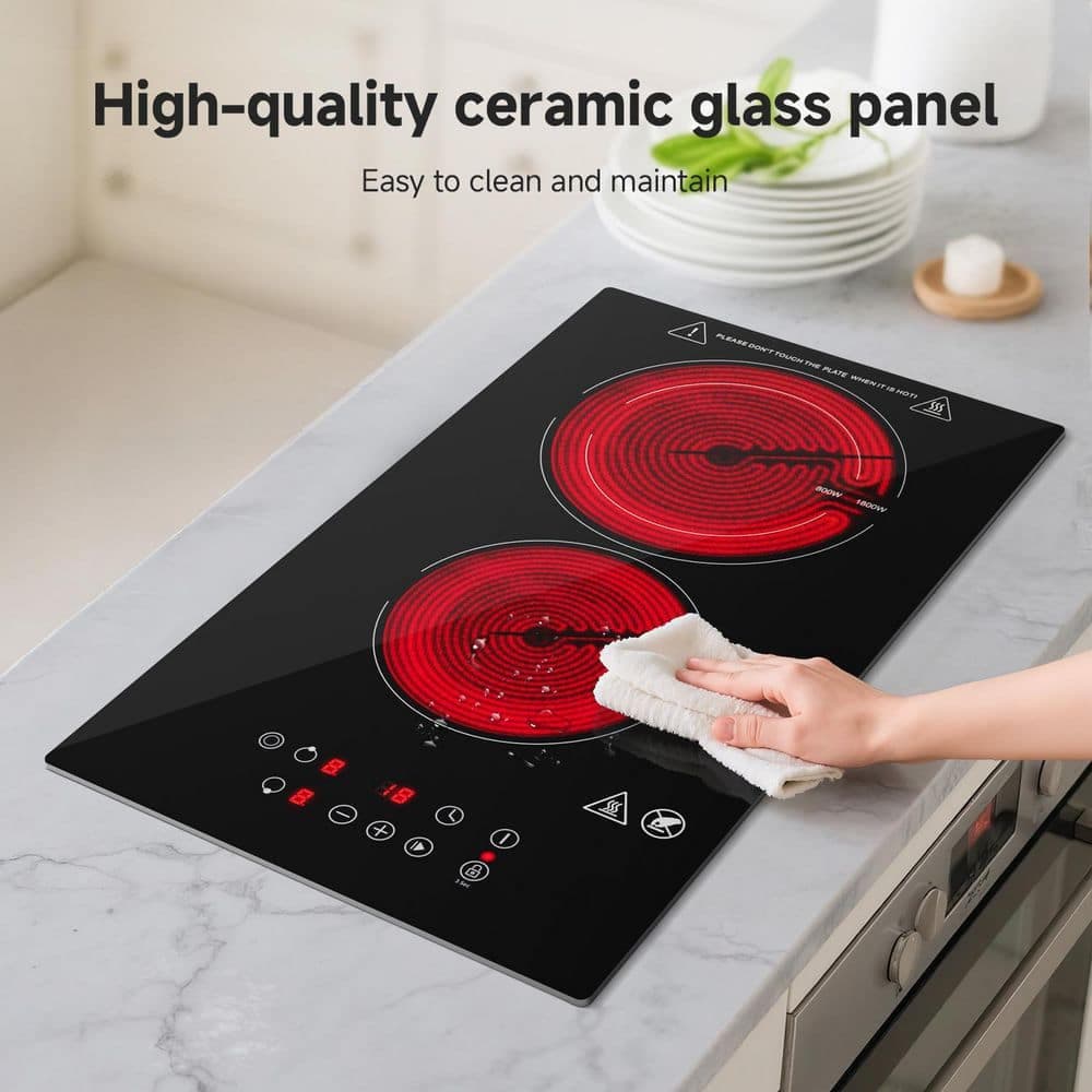 - Dual-burner induction cooktop with 9 power levels