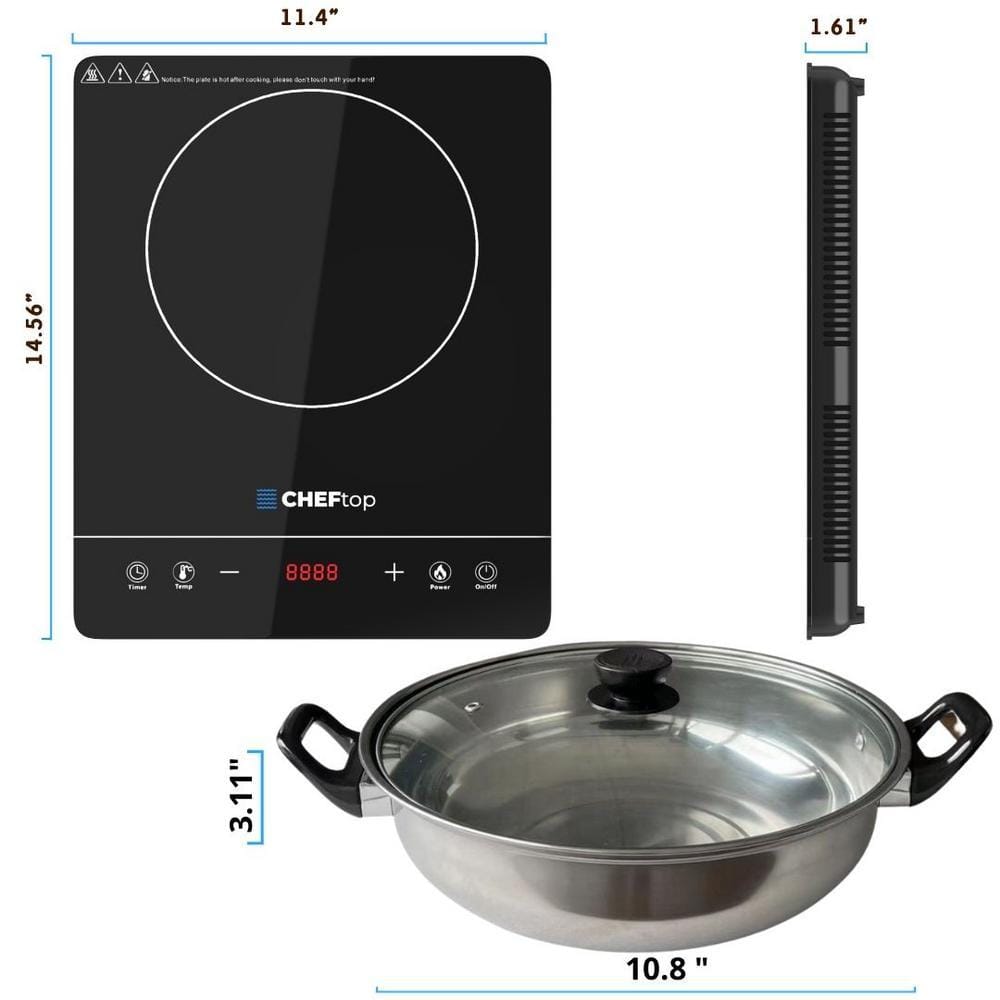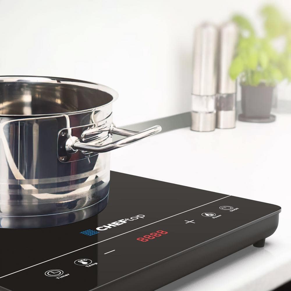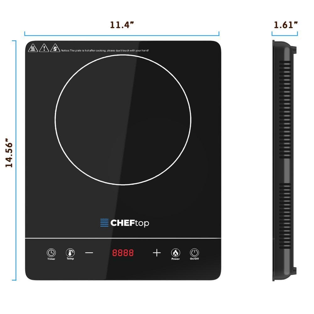 The Cheftop single induction cooktop is efficient and speed heats at 1300-Watt power. Equipped with powerful cooking zones, this induction cooktop features 8 heating level settings for each heating zone range from a light simmer to a rapid boil. The digital touch controls is easy to operate to switch into different levels from boil to a simmer. This single induction cooktop also comes with a black smooth scratch-resistant vitro ceramic glass surface, making it durable and easy cleaning. The Cheftop Single Burners Electric Stove Induction Cooktop will give you the utmost cooking flexibility. Induction cooking is 70% more efficient than gas and 20% more efficient than electric and offers more responsive, exceptional temperature control at low and high heats, so it is gentle enough to melt chocolate and powerful enough to boil water. And because heat is generated directly in the cookware, the cooktop stays cooler to the touch, making it safer and easier to clean. Induction elements are compatible with most stainless steel and cast-iron cookware. If a magnet sticks to the bottom of a pot or pan, it is induction friendly. The Cheftop single induction cooktop offers the best in contemporary design matched with advanced technology to transform the way you live.