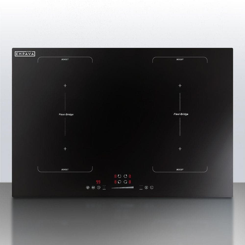 The 30 in. 4-element induction cooktop with certification is a perfect combination of style and practicality. The sleek black finish and built-in design offer an attractive look for any counter. It includes 4 heating elements: 2 x 7.5 in. 2,000-Watt elements (Power Boost up to 2,600-Watt) and 2x 7.5 in. 1,500-Watt elements (Power Boost up to 2,000-Watt), delivering even heat for simmering, boiling, stir-frying, steaming, and melting. The Flexi Bridge Function allows you to combine 2 adjacent elements into a larger cooking zone, perfect for oversized cookware or griddles. The red LED display paired with the black glass surface creates a modern look that complements any kitchen. A hot surface indicator lets you know when the elements are hot, while sensitive digital controls and a 99-minute timer ensure precise and accurate cooking. The Power Booster Function provides maximum power for a short period, ideal for rapid boiling or high-heat cooking. Over the years, Empava induction cooktops have been a popular choice for kitchen upgrades and new builds, offering both performance and style.