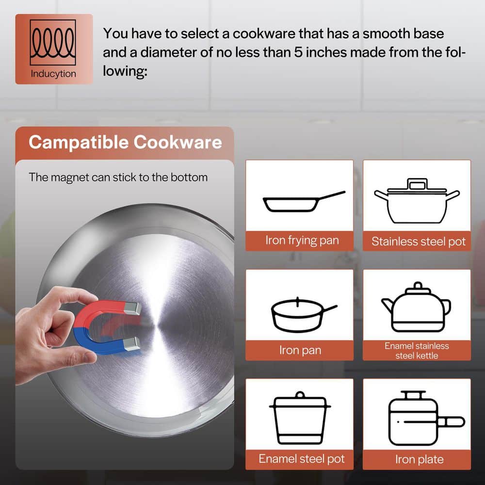 JEREMY CASS 12 in. 1 Elements Ceramic Portable Induction Cooktop in Orange with 8 Power Levels and Timer, Tem Range at 176℉-464℉