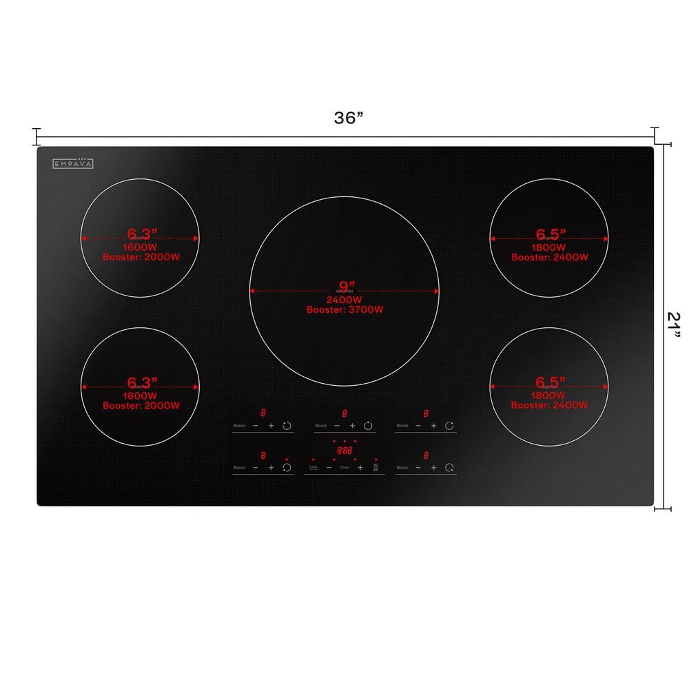 Empava Built-in 36 in. Induction Electric Modular Cooktop in Black with 5 Elements including Melting Elements