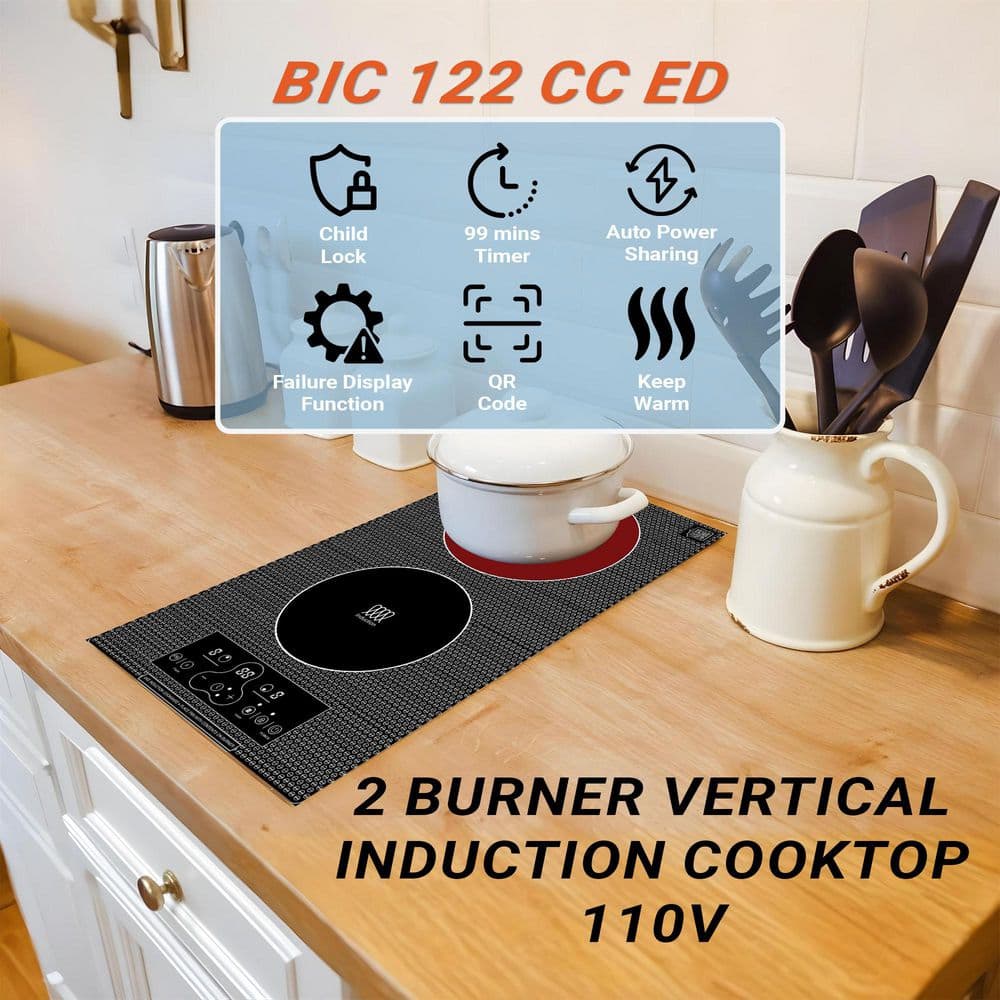 BIC 122 CC ED: The Art of Precision CookingSome kitchens demand more than a basic stovetop. They require an appliance that moves with your rhythm, responds to your touch, and makes every meal an effortless masterpiece. Enter the BIC 122 CC ED, a sleek black, two-burner built-in induction cooktop designed for those who demand speed, precision, and efficiency. With 1800W of total power, a 1400W booster, and auto power sharing, this vertical cooktop heats up in seconds and adjusts seamlessly to your needs-whether you're searing, simmering, or simply keeping a dish warm.Designed for built-in or freestanding installation, this compact powerhouse fits seamlessly into any space. Its intuitive touch controls, 99-minute independent timers, and residual heat indicator offer effortless operation and built-in safety. And with child lock, automatic safety shutoff, and high/low voltage protection, the BIC 122 CC ED isn't just smart-it's safe.