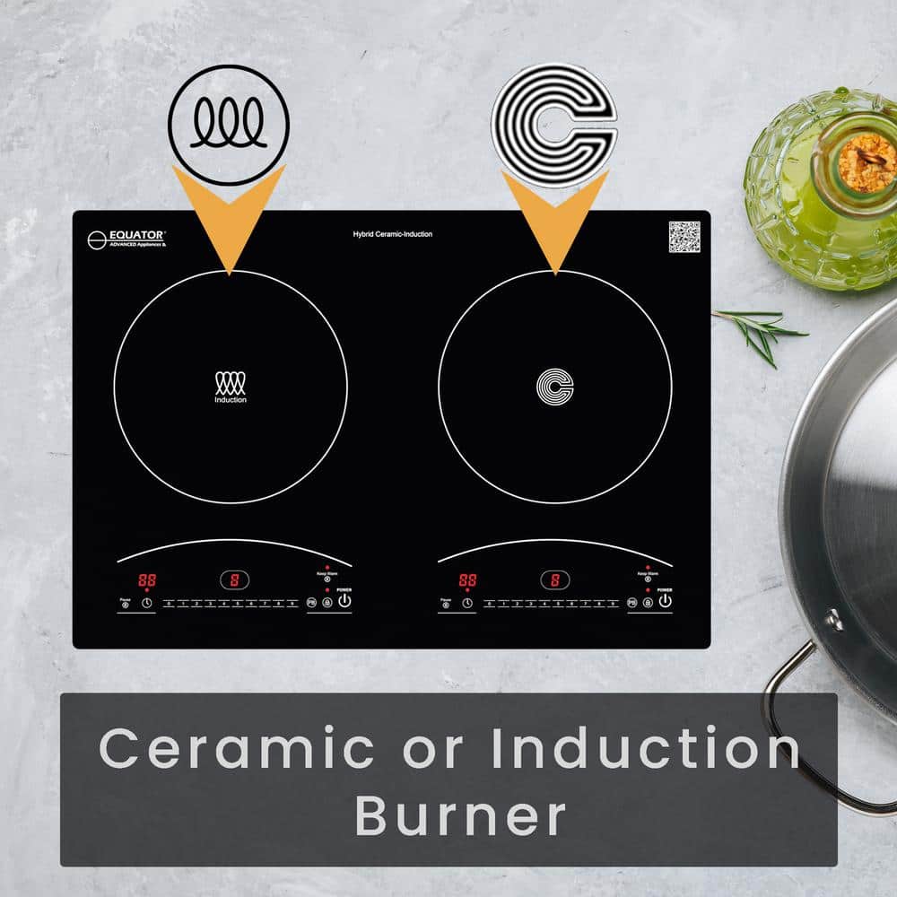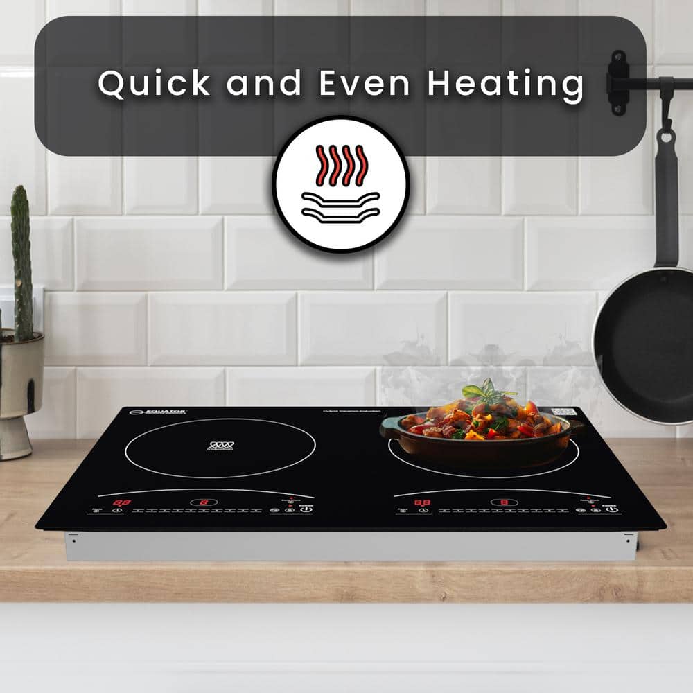 Equator 20.5 in. 110V Electric 2-Elements Ceramic-Induction Cooktop Glass Top with 9-Power Levels Black Any Cookware Compatible