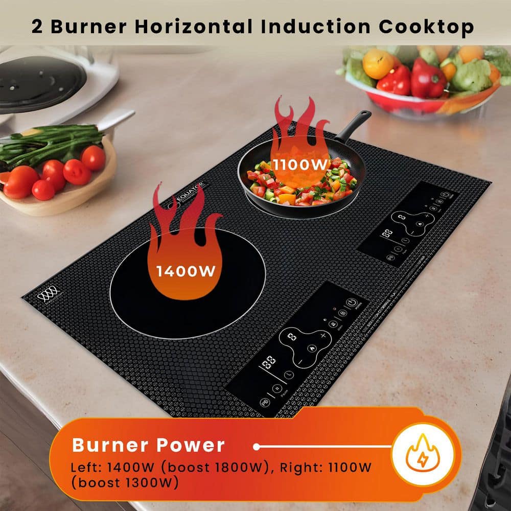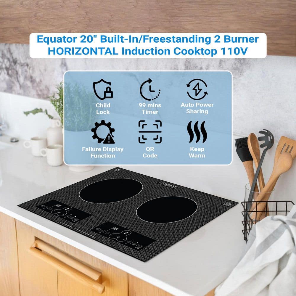 Equator 20 in. Horizontal 2 elements Dual Induction Cooktop ceramic glass surface 9 Power Built in/Freestanding 110V Black