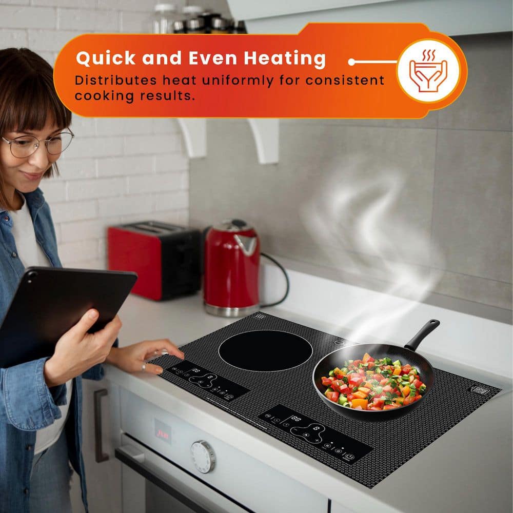 True Induction TI-2C 23in. Dual Burner Ceramic-Glass Portable Induction Cooktop 1750W 1026UL Listed Free Bag and 2 Matts