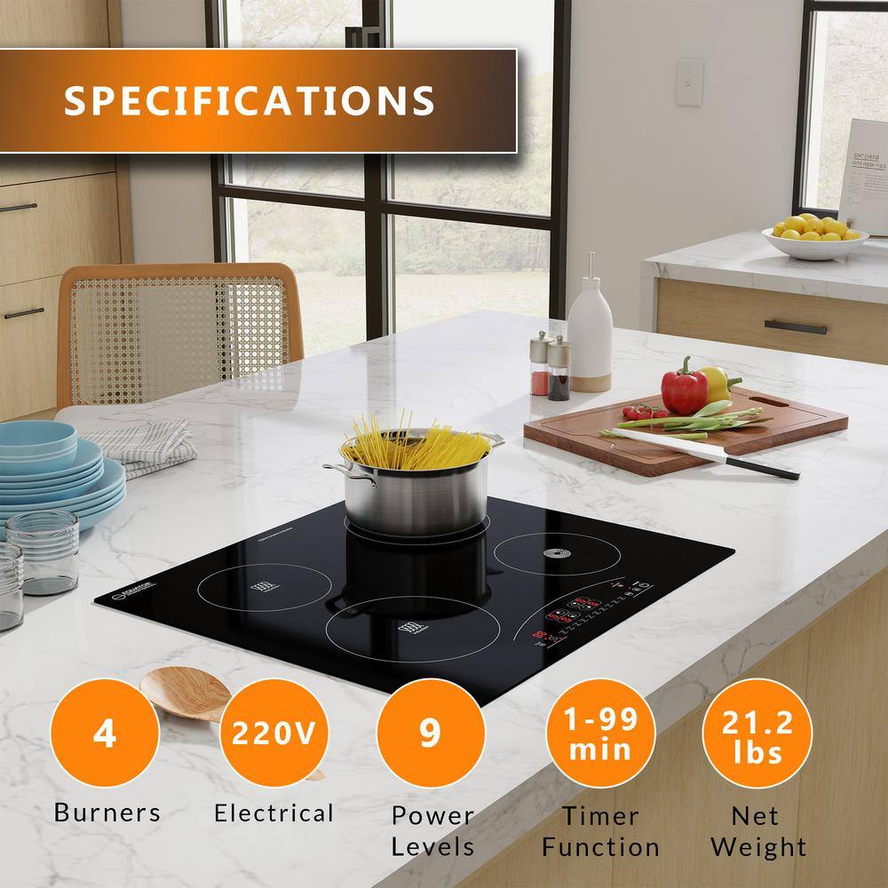 Equator 24 in. 4-Elements Electric Induction and Ceramic Burners Cooktop 9-Power Levels Ceramic Any Cookware Compatible in Black