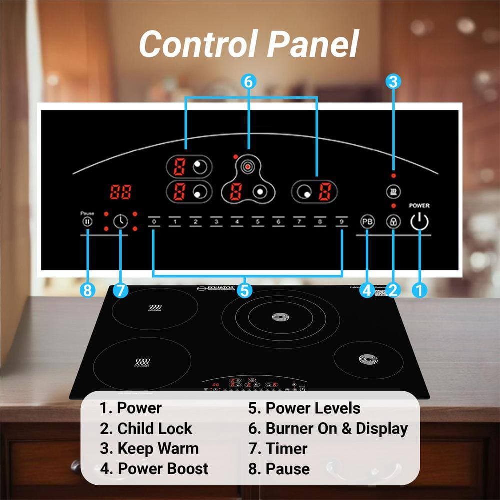 Equator 30 in. 4-Elements Built in Electric Induction and Ceramic Burners Cooktop in Black Ceramic Any Cookware Compatible