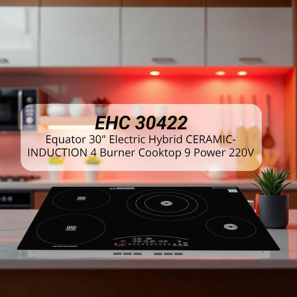 "EHC 30422 Series: Two Ways to Command the Heat, One Culinary StatementNot all kitchens demand the same performance. Some are sleek and understated. Others host a symphony of sizzling pans and second helpings. The Equator EHC 30422 Series-including the classic EHC 30422 and its elevated sibling, the EHC 30422 ED-exists for both. These 30-inch electric hybrid cooktops merge two induction zones with two ceramic burners, giving home chefs the option to sear, simmer, or saute with the power of choice.From the glowing black vitroceramic surface to the slider touch controls and digital display, the cooktops whisper modern refinement. And while both models offer the same robust 8700W of total power, the EHC 30422 ED steps forward with enhanced burner configuration-adding a larger center triple-zone burner (up to 11.2"") for those grander pots and inspired culinary experiments. Built-in elegance with a difference you'll feel every time you cook."