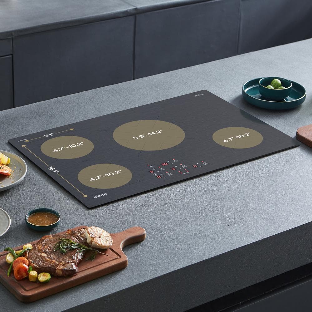The JEREMY CASS BigChef induction cooktop comes in two options-4 burner elements and 5 burner elements-and has an always-cool cooking surface. It is compatible with any cookware that has a magnetic base and a magnetic permeability diameter of 4.7 to 14.2 in. This allows for a wide range of pots and pans, ensuring versatility in your cooking. The ceramic glass plate offers a smooth, sleek design that enhances kitchen aesthetics. So recipes are followed more efficiently, meals are made quickly, and cleanup happens easily.