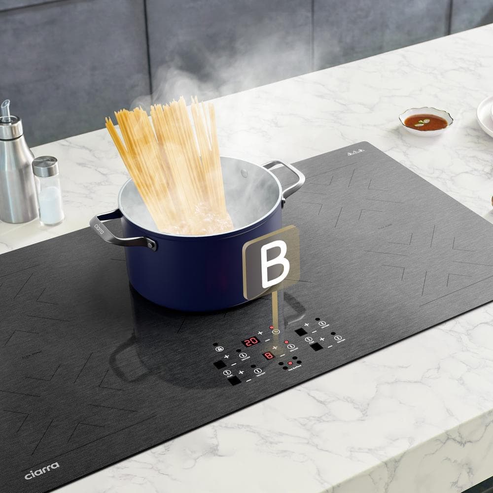 JEREMY CASS BigChef 36 in. 5 Burner Elements Induction Cooktop in Black with Glass Top, Speed Boost, Flex Zone Elements, Safety Lock