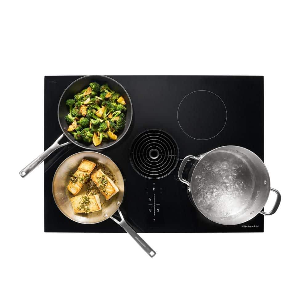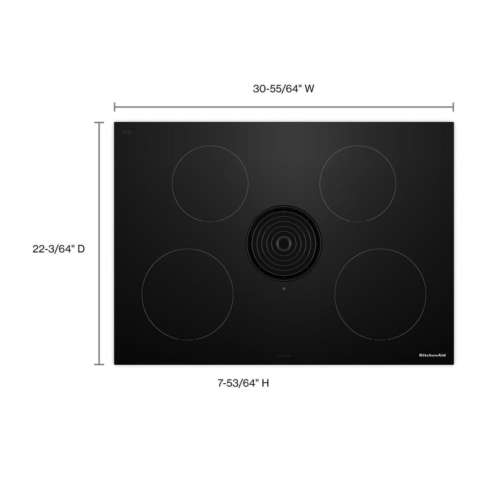 KitchenAid 30 in. 4-Element Glass Top NextGen Induction Downdraft Cooktop in Black with 4-Cooking Zones