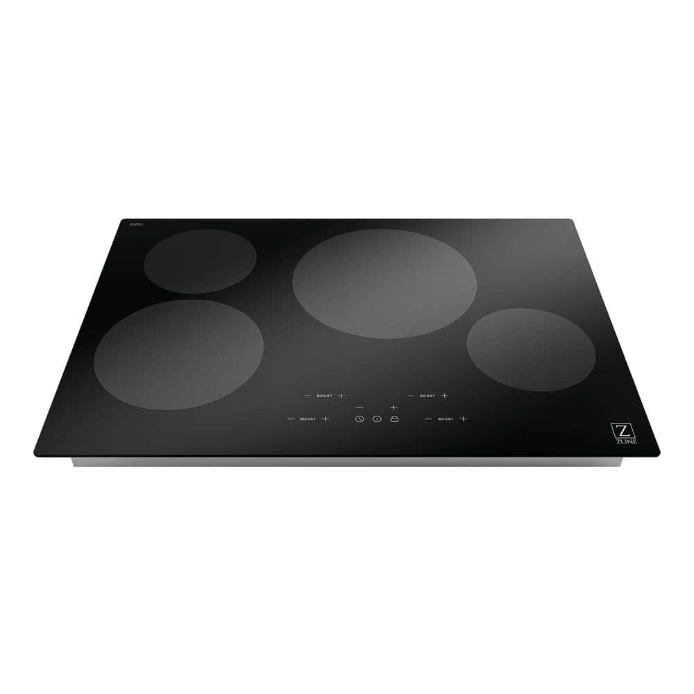 ZLINE Kitchen and Bath 30 in. 4 Burner Element Top Control Induction Cooktop with Touch Controls in Black Glass
