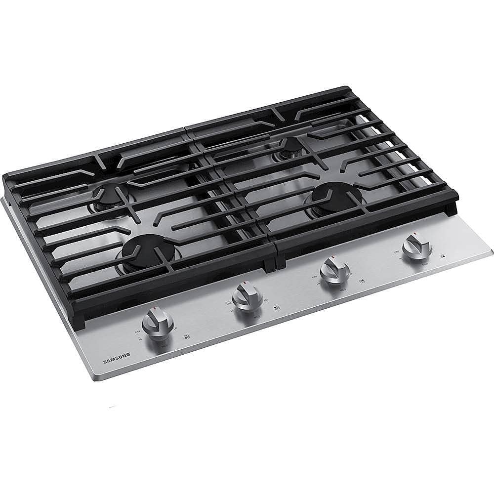 Bring convenient restaurant-style features to your kitchen with this stainless steel Samsung gas cooktop. Four burners provide flexibility to cook multiple dishes simultaneously, and various outputs let you maintain a low simmer or quickly boil water. Continuous grating makes it easy to slide saucepans and skillets smoothly and easily across this Samsung gas cooktop.