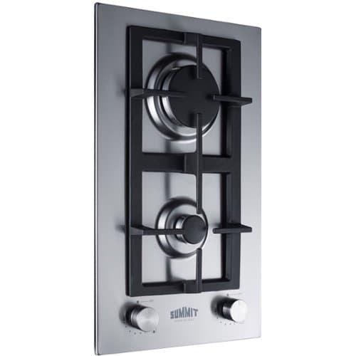Treat your loved ones to homemade meals using this 12-inch SUMMIT gas cooktop. The brushed stainless steel construction blends durability and modern elegance, while the two sealed burners with removable caps offer easy cleanup. Featuring continuous cast-iron grates, this SUMMIT gas cooktop ensures safe movement of hot pots across burners, and the slim-fit design is ideal for small kitchen spaces.
