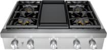 Thermador - Professional 36" Gas Rangetop with 4 Pedestal Star Burners, Griddle and LP Conversion - Silver