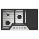 Whirlpool - 36" Built-In Gas Cooktop with 3 Burners and 2-in-1 Hinged Grate to Griddle - Stainless Steel