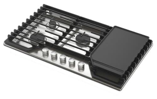 Cook everyone's favorite at once with this 5-burner gas cooktop that offers greater Cooking Flexibility. This cooktop griddle includes a SpeedHeat Burner for a quick boil and comes with a 2-in-1 Hinged Grate to Griddle so you can easily swap cooking surfaces. Then cleanup is quick and easy with the EZ-2-Lift Hinged Cast-Iron Grates.