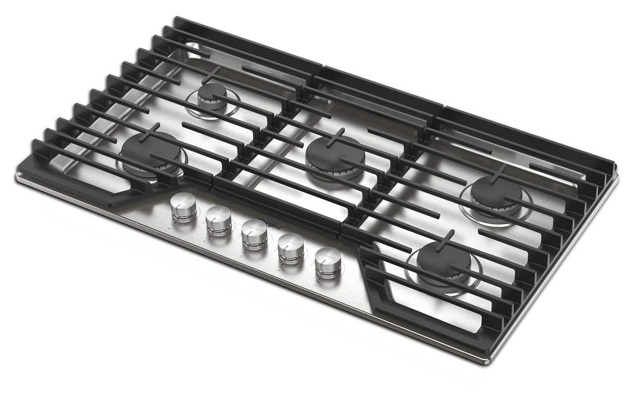 Whirlpool - 36" Built-In Gas Cooktop with 5 Burners and EZ-2-Lift Hinged Cast-Iron Grates - Stainless Steel