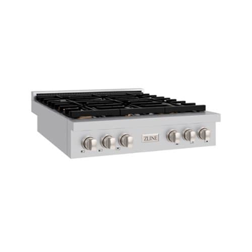 ZLINE - 36 in. Paramount Gas Rangetop with 6 Brass Burners and Porcelain Cooktop (SRT-BR-36) - Stainless Steel