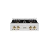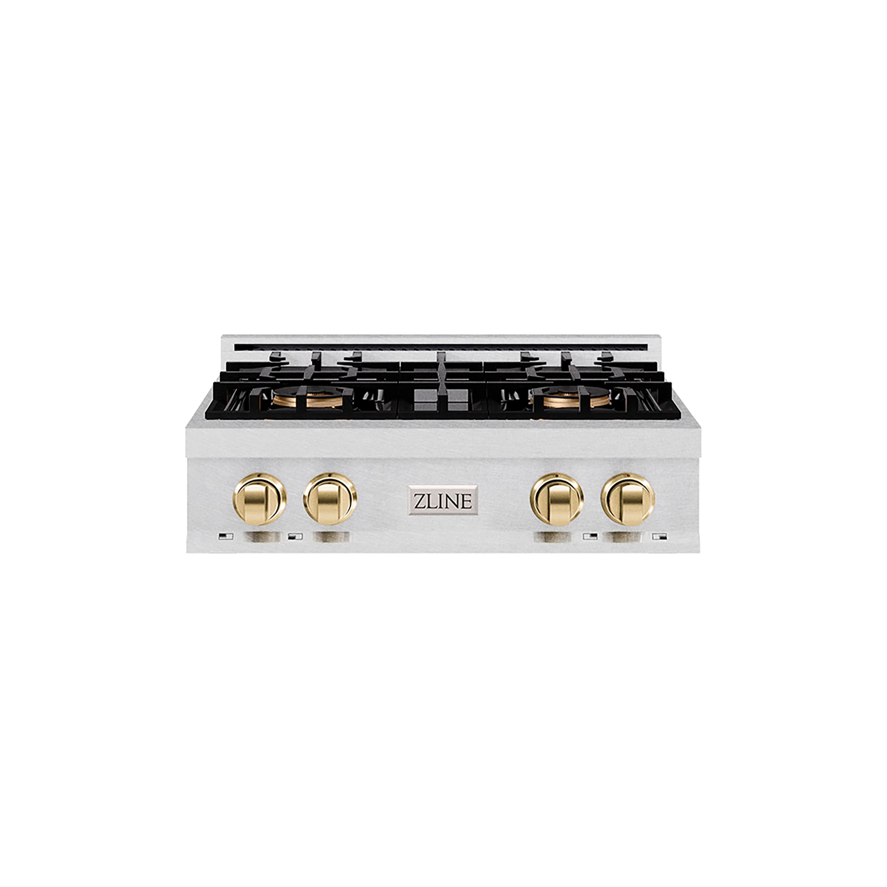 ZLINE - Autograph 30 in. Satin Steel Classic Built-In Gas Cooktop with 4 DuoPro Burners and Gold Accents (PCRTSZ-30-G) - Stainless Steel