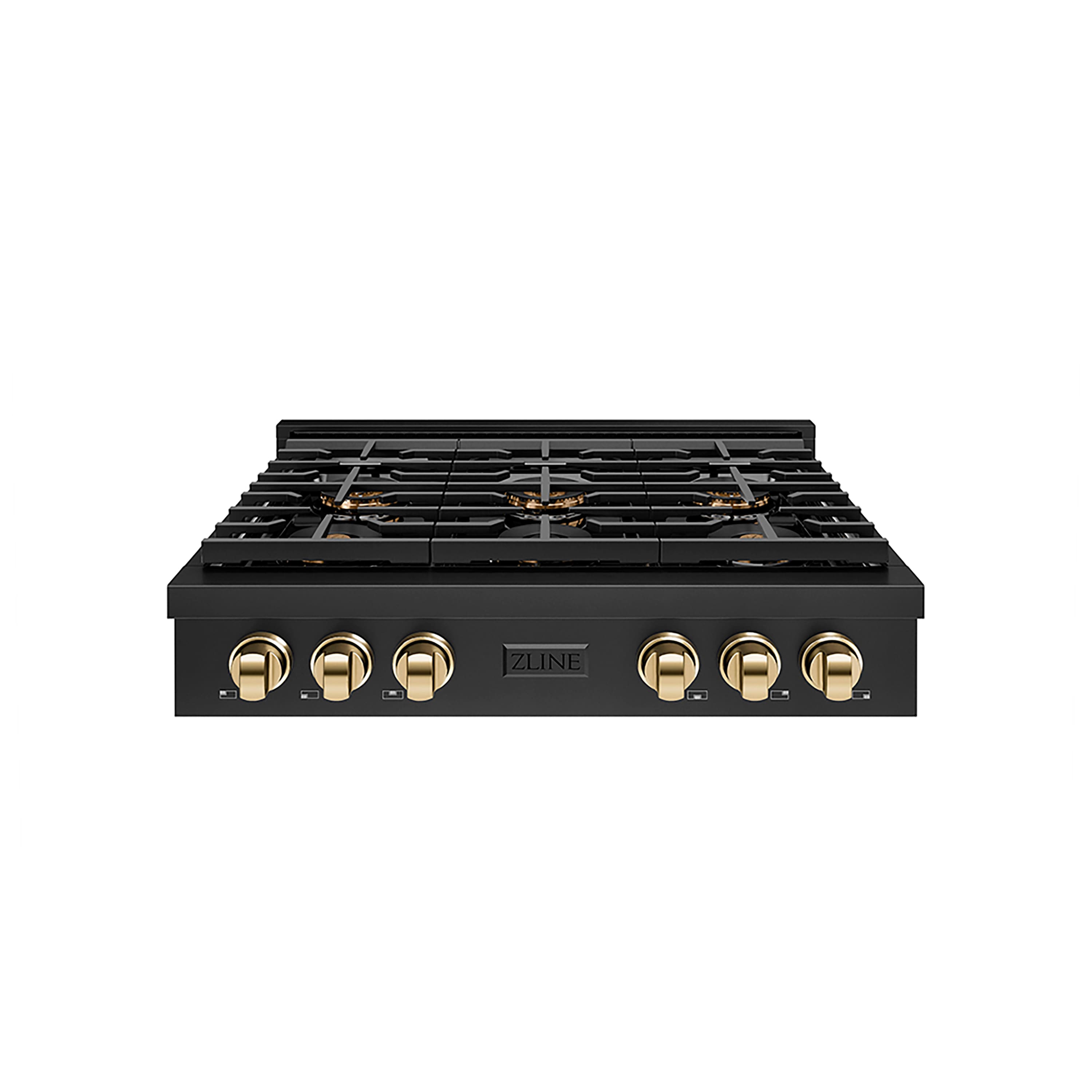 ZLINE - Autograph 36 in. Black Stainless Paramount Rangetop with 6 DuoPro Burners and Gold Accents (PSRTBZ-36-G) - Black Stainless Steel