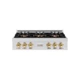 ZLINE - Autograph 36 in. Classic Rangetop with 6 DuoPro Burners and Gold Accents (PCRTZ-36-G) - Stainless Steel