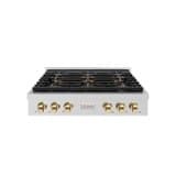 ZLINE - Autograph 36 in. Paramount Rangetop with 6 DuoPro Burners and Gold Accents (PSRTZ-36-G) - Stainless Steel