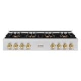 ZLINE - Autograph 48 in. Classic Rangetop with 8 DuoPro Burners and Gold Accents (PCRTZ-48-G) - Stainless Steel