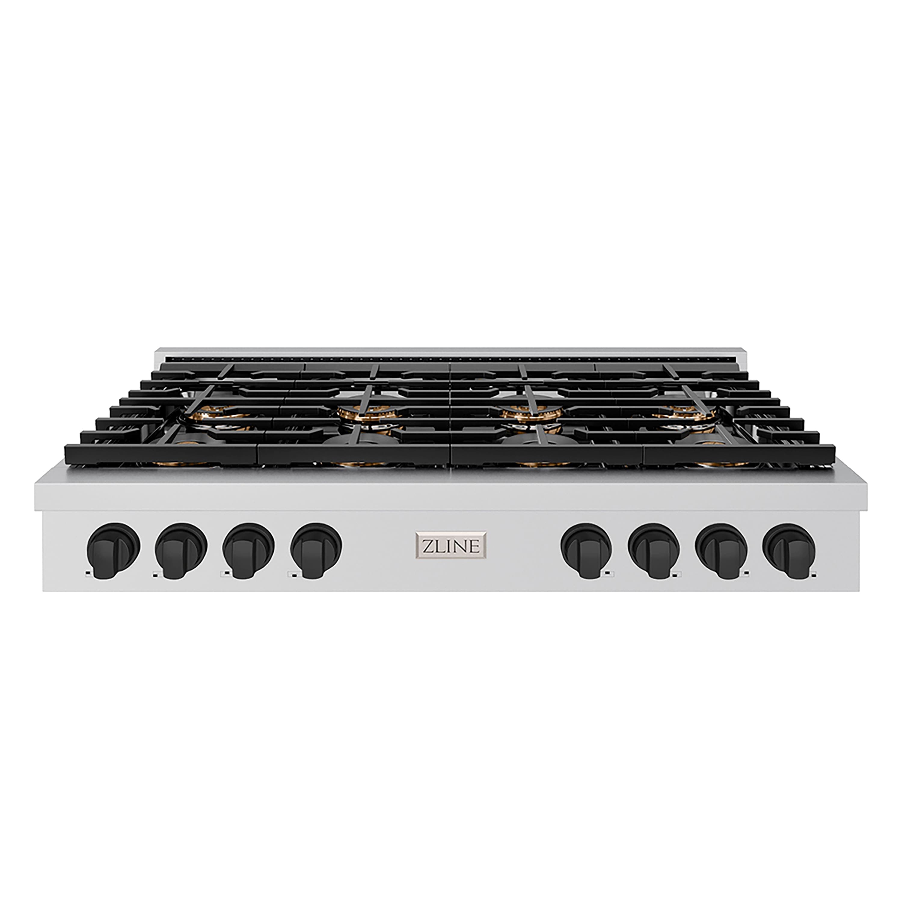 ZLINE - Autograph 48 in. Paramount Rangetop with 8 DuoPro Burners and Black Accents (PSRTZ-48-MB) - Stainless Steel