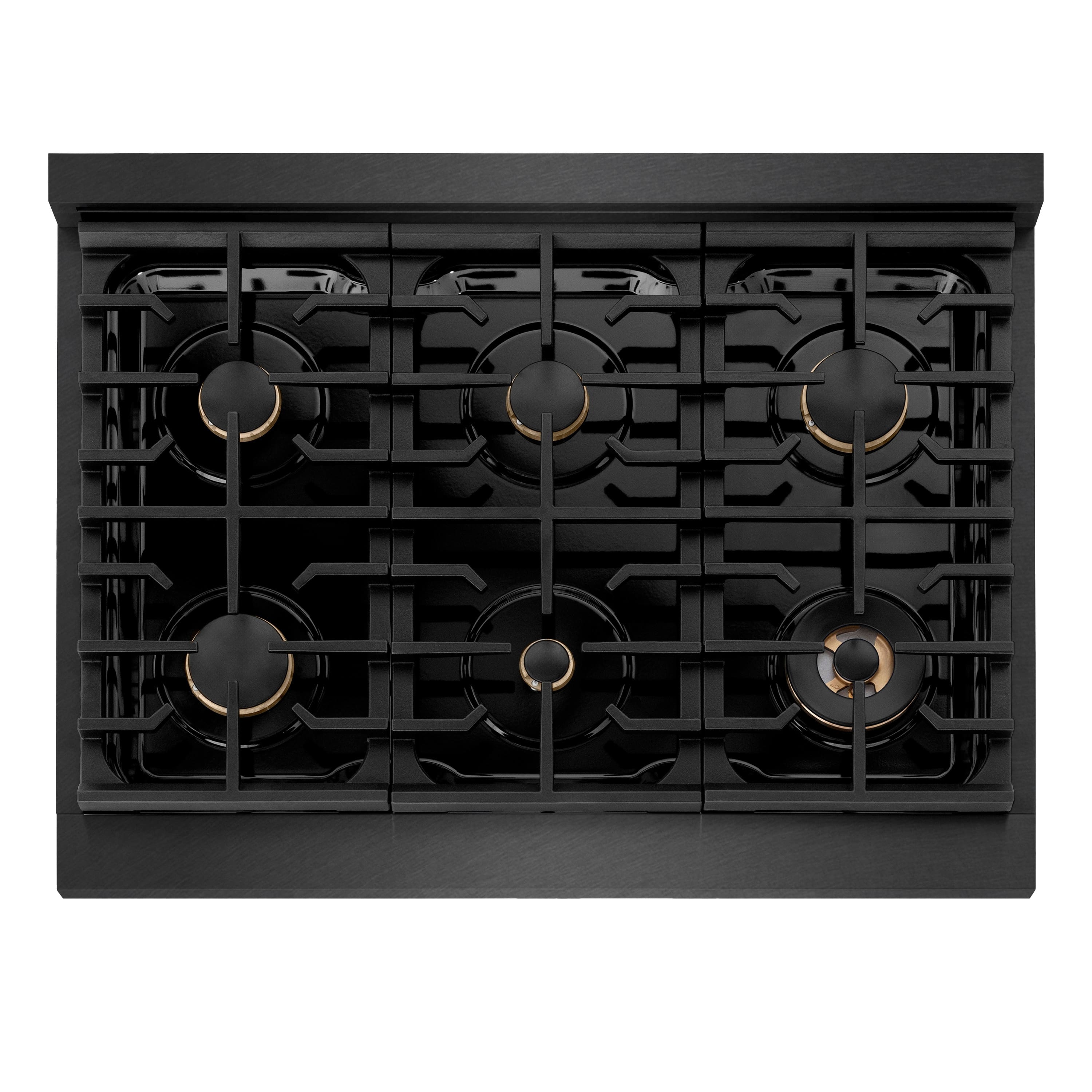 ZLINE - Designer 36 in. 6 Burner Paramount Gas Rangetop in Black Satin Steel with Black and Bronze Accents (SRTBSZ-36-MBCB) - Black Satin Stainless Steel