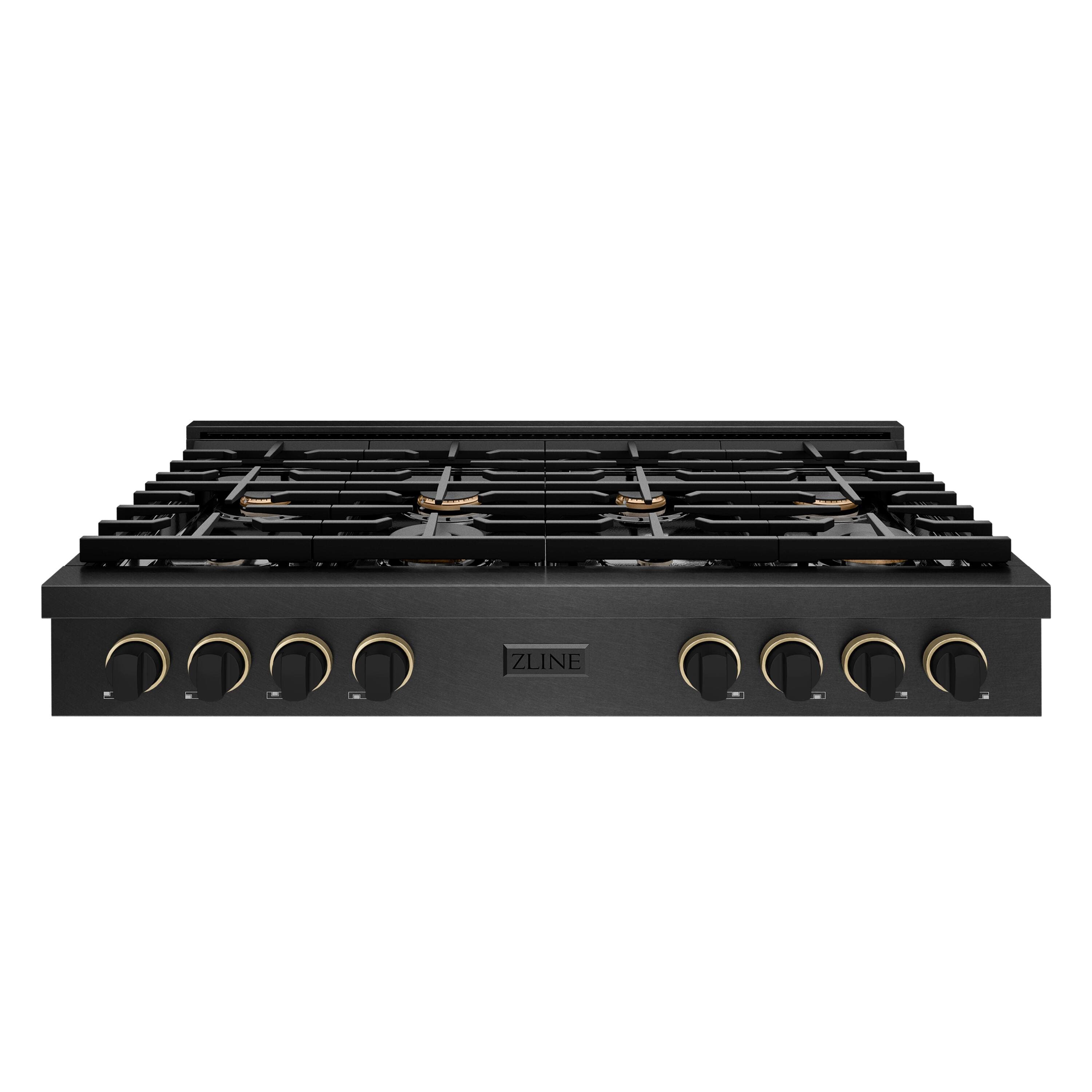 ZLINE - Designer 48 in. 8 Burner Paramount Gas Rangetop in Black Satin Steel with Black and Bronze Accents (SRTBSZ-48-MBCB) - Black Satin Stainless Steel
