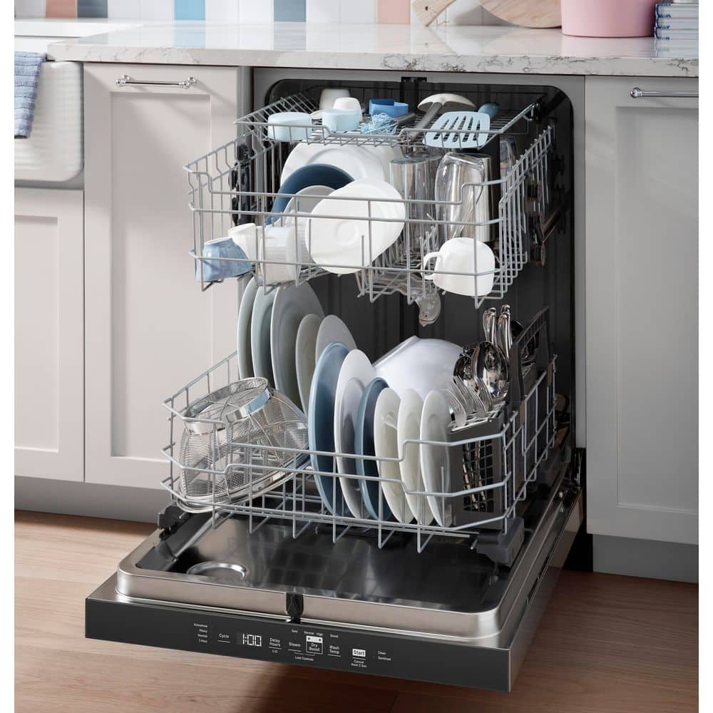 GE 24 in. Top Control Hybrid Tub Dishwasher in Stainless Steel with Third Rack, Bottle Jets, Dry Boost & 50 dBA