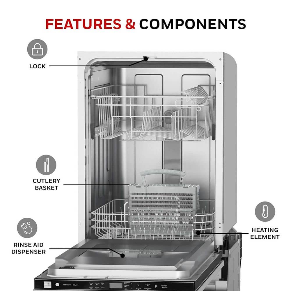 The Honeywell 18 in. dishwasher is compact in size allowing for more cabinet space in the kitchen. The racks are suitable to fit 8 place settings of dishes. There are 6 washing programs to choose from-heavy, normal, eco, glass, rapid, and rinse. The tub is made of stainless steel for better efficiency performance. This uses low energy consumption according to ENERGY STAR standards. There is up to 24 hour delay start for you added convenience. The unit dimensions are 18 in. x 22 in. 6 in. x 32.4 in., This has UL and ENERGY STAR certification.