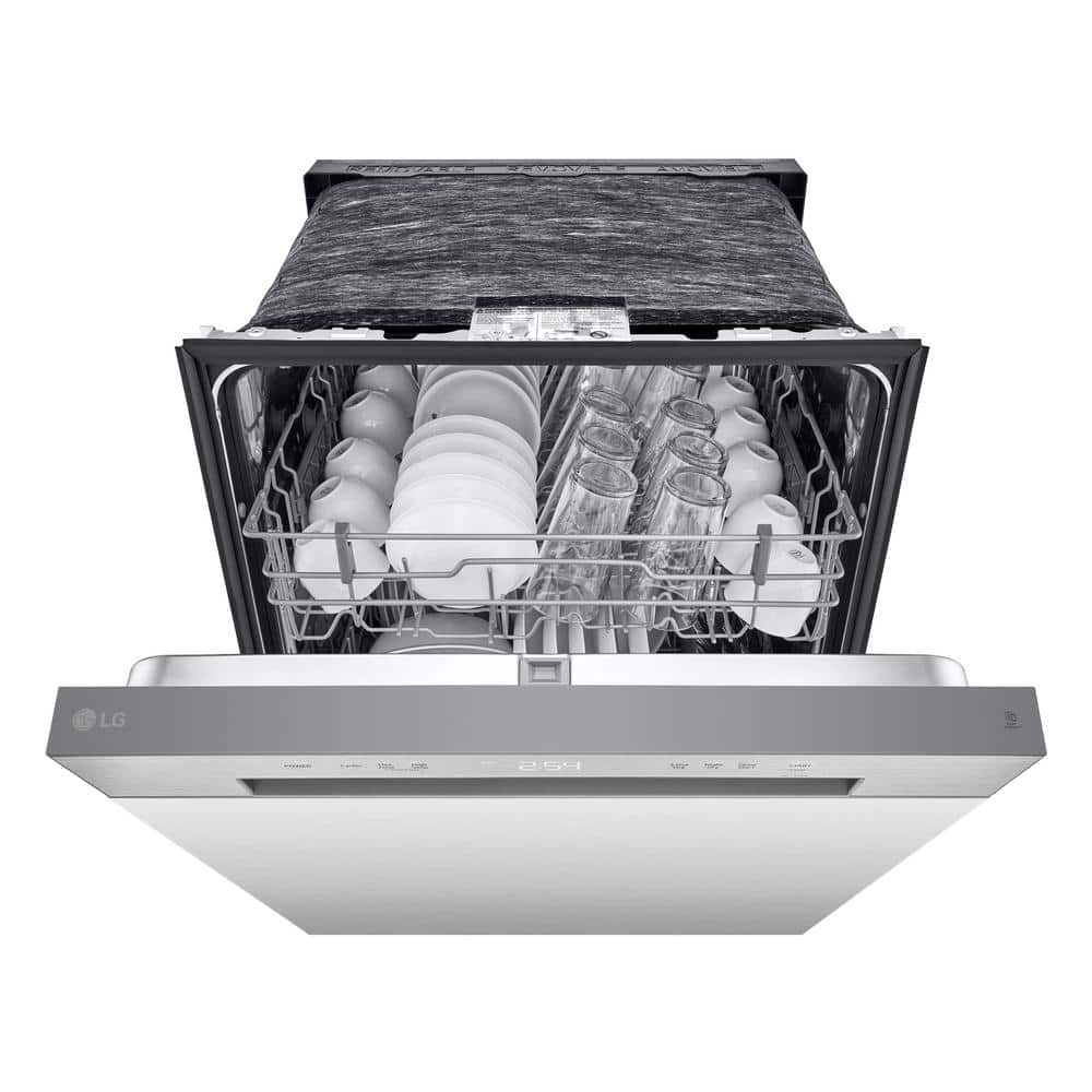 LG 24 in. Top Control Standard 46 dBA Dishwasher with QuadWash, 3rd Rack, Blastzone Bottle Wash in Stainless Steel
