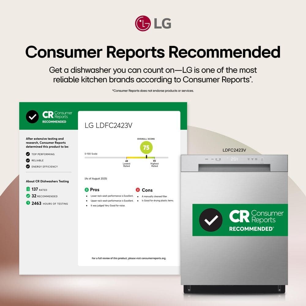 - LG Rust-Resistant Stainless Steel Tub is durable